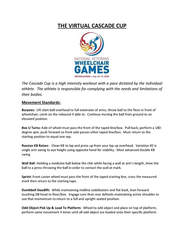 | Virtual Cascade Cup Movement Standards | Virtual Cascade Cup Overview | Adaptive Fitness Training & Competition |